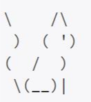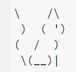 print("""\\ /\\ ) ( ') ( / ) \\(__)|""")이 방법을 통해 다음 그림과 같은 값을 출력하게 된다. 아까 본 것과 같은 그림이다.